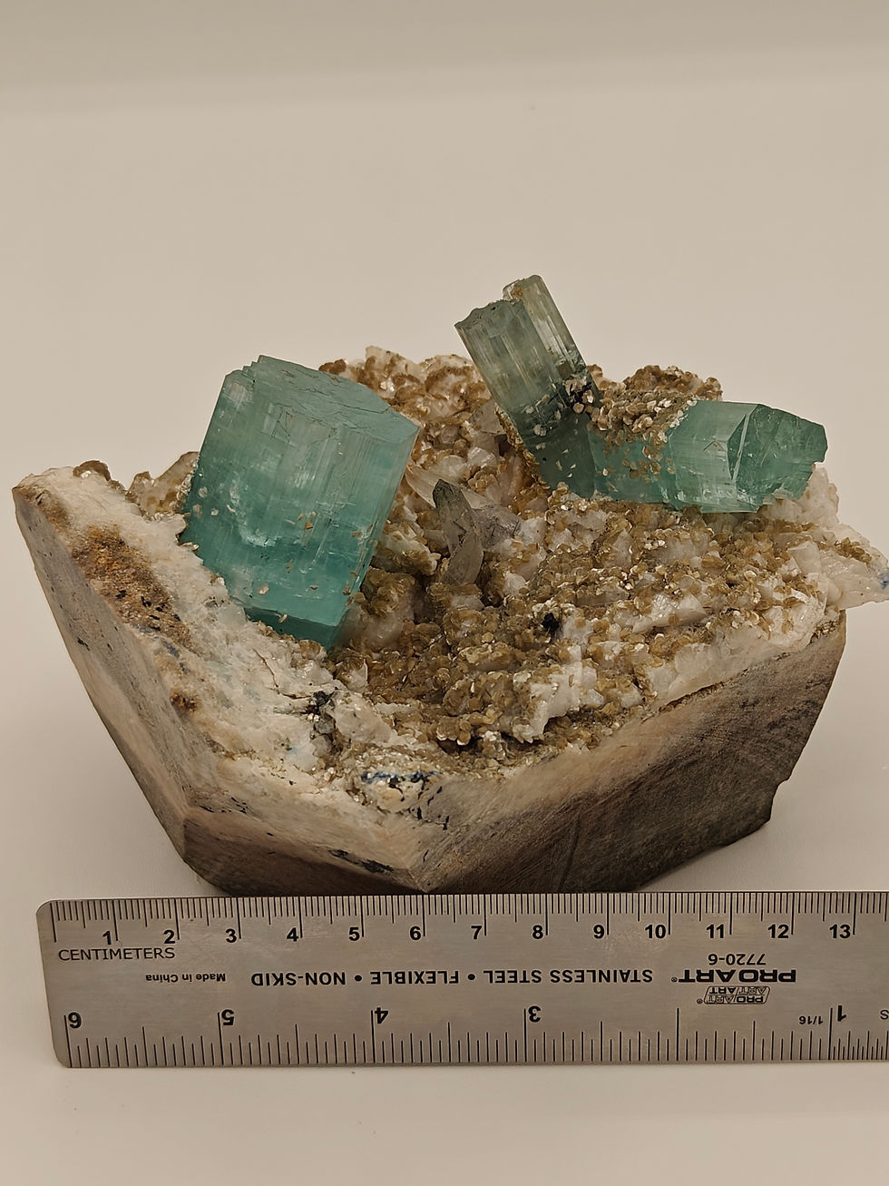 A sky-blue to sea-green gem variety of beryl. It is mainly associated with granitic pegmatites.